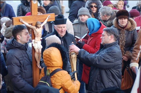 Но вернемся к текущему 2016 году, в котором впервые в истории 12 февраля произошла встреча Патриарха Русской Православной Церкви и предстоятеля папского престола на официальном уровне. О результатах, плодах и перспективах этой встречи до сих пор ведутся разговоры не только среди верующих, но и в гражданском обществе. Очередным экуменическим плодом этой встречи стали мероприятия, впервые проведенные католиками. В минувшие выходные они вышли на улицы ряда городов нашей страны с "богослужениями" Крестного Пути, кощунственно имитируя традиционный православный Крестный Ход.