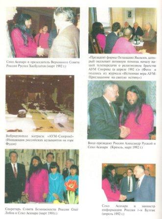Встречи лидера японской террористической секты «АУМ Синрикё» с руководителями РФ. Иллюстрации из книги А. Егорцева